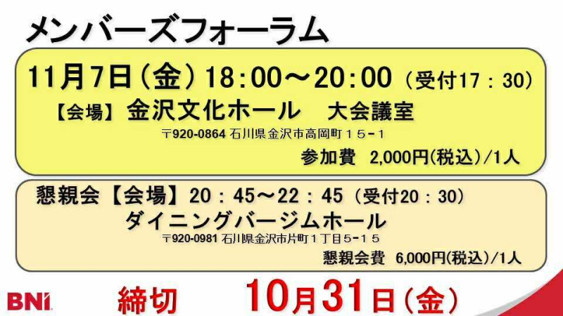 BNI Milioneチャプター 10期書記兼会計 藤野挑
